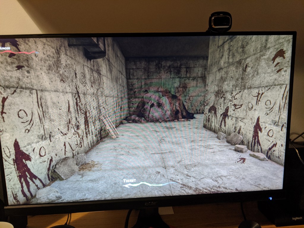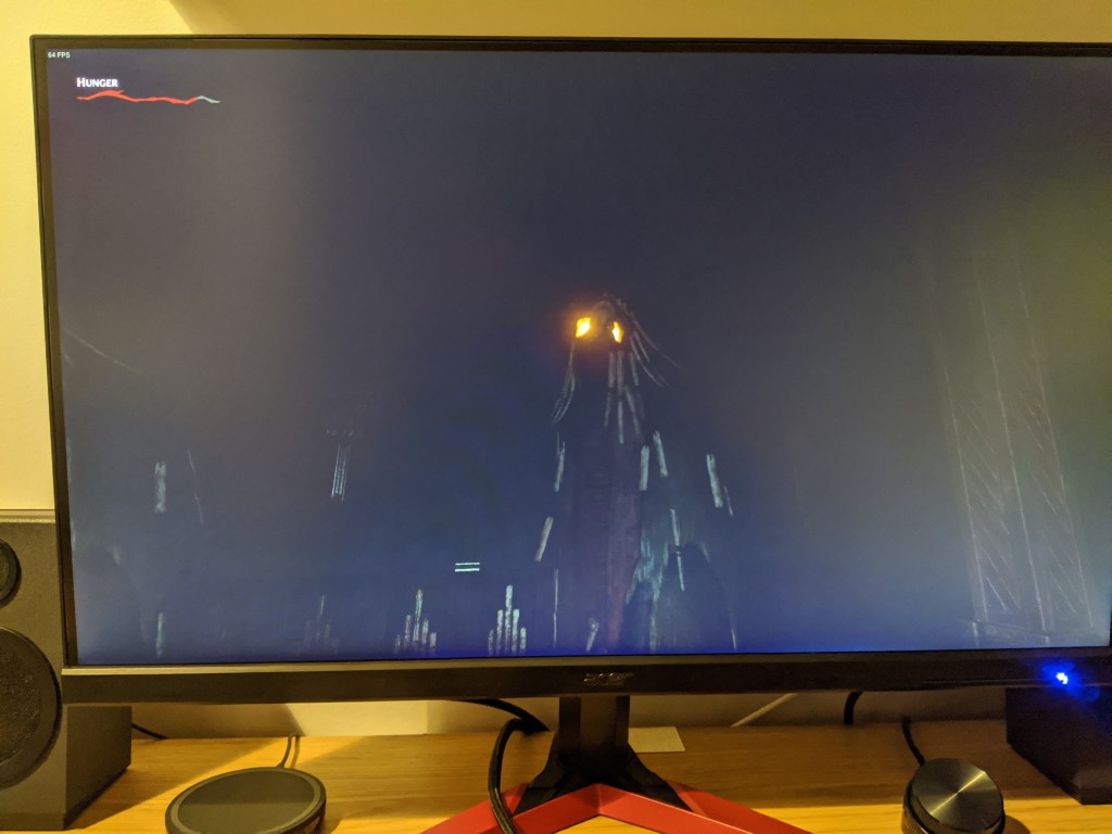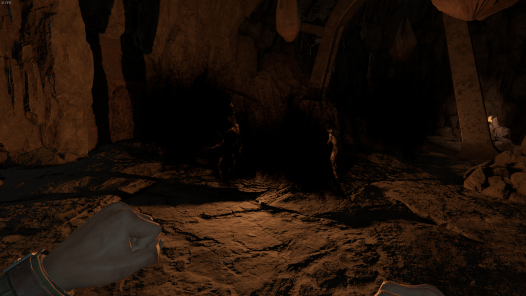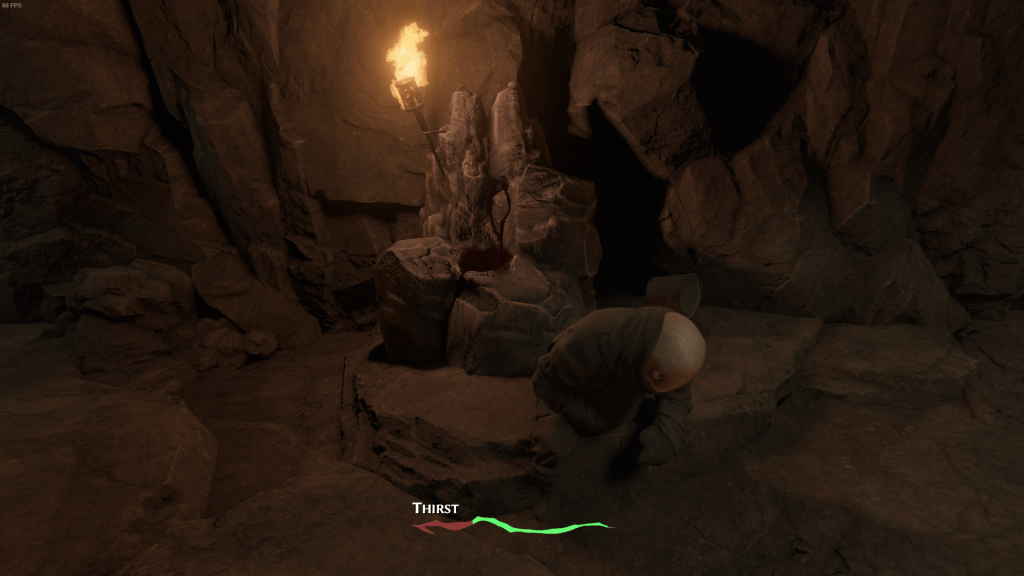 You awaken to find yourself inside of a new set of caves that look eerily like the inside of a body. It’s hard to tell if you’re inside of moist rock tunnels or walking through the veins and arteries as a horrible squelching sound accompanies your footsteps. It’s a really maze like environment so trying to work out where to go and why isn’t abundantly clear. The music is again almost silent meaning it’s an almost introspective experience, you’re left wondering what exactly is going on as you walk around these fleshy halls.