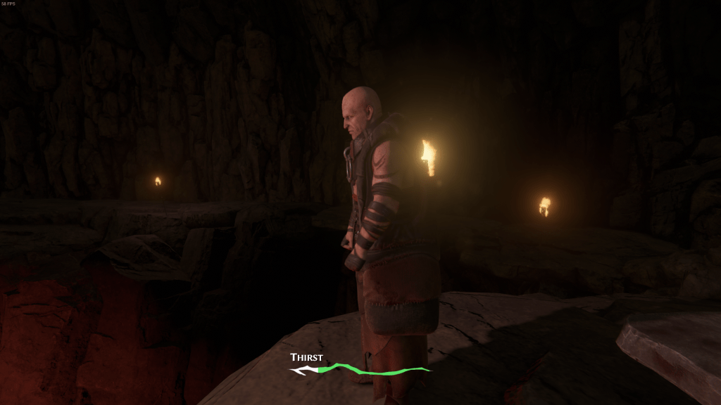 Upon reaching the centre of the cave system you’ll find Foreman Oyun nowhere to be seen and instead a worm man standing over a stone altar. He instructs you to perform surgery on a few odd items you’ve found whilst in the Abattoir, a fingernail and a spindle, which creates a small beating heart which you can enter into a dialogue with.