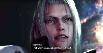 So at this point we’re well away from the original and into crazy territory. The ensuing boss fight is absolutely bonkers, taking place in some strange alternative dimension and looks more like something out of Advent Children, with characters flying and leaping huge distances and large chunks of building being thrown around by a monstrous demigod. After defeating the god of the whispers and freeing humanity, Sephiroth himself descends from the heavens to fight against the gang and it’s all very intense and climactic.