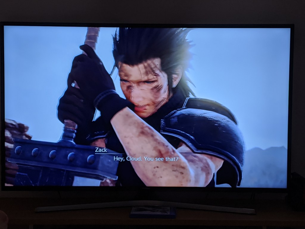 After Sephiroth is defeated (yes, that’s correct), he teleports himself and Cloud out to the edge of space and delivers some very cryptic evil sound dialogue about how everything is now different and asking Cloud to join him. As if that wasn’t strange enough, suddenly Zack Fair, Cloud’s dead friend and protagonist of the prequel game FF7 Crisis Core, is seemingly resurrected in an alternative dimension? Sephiroth finally fucks off and we are left with the gang heading out into the world just like they would have normally been at this point.