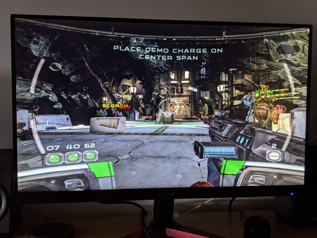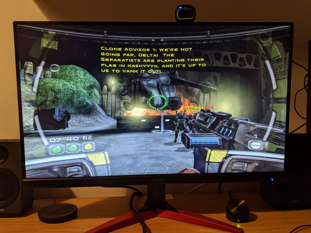 While it’s really easy to criticise games from this generation as looking bad by modern standards, a lot of care has gone into making this world feel really distinctly “Star Wars”. The sound of blasters firing and the chatter of droids as you blast through them is something that’s completely unique to this franchise and Republic Commando absolutely nails it. Despite the world being that generic mix of grey and brown from 2000s FPS games, moving through the forests of Kashyyyk with their massive trees or crawling through the vents of the republic battleship are so obviously Star Wars even from a quick glance.