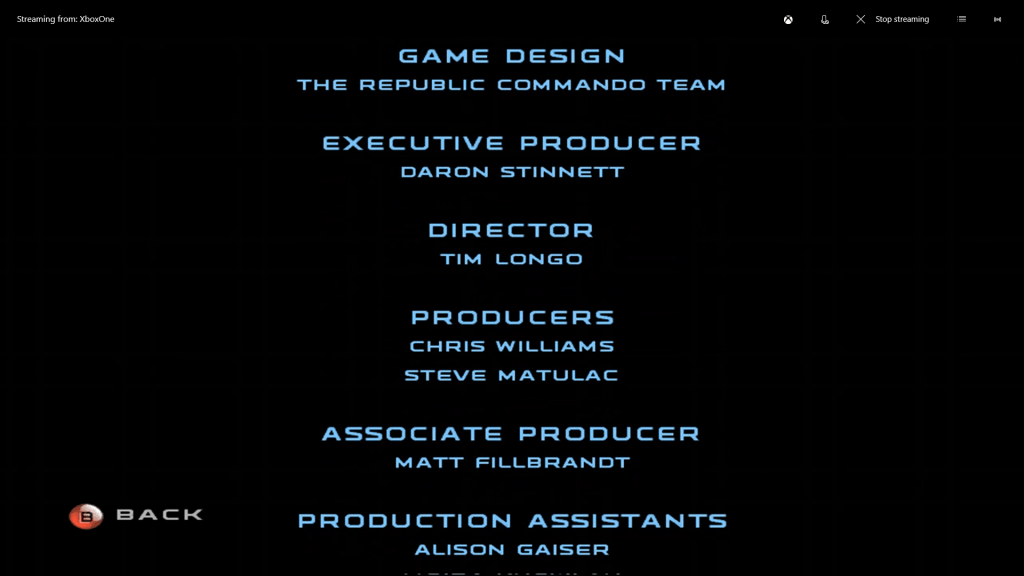 The soundtrack also deserves a mention as the composer, Jesse Harlin, doesn’t seem to have worked on a huge amount of games so he deserves credit for his work here. Most Star Wars soundtracks tend to be pretty close to a John Williams impersonation but Harlin took Republic Commando in quite a unique direction. There is a huge amount of booming male choral singing over the orchestras which adds this ancient warfare feeling to the music. Anyone who’s heard Jeremy Soule’s amazing Skyrim soundtrack will know exactly what I’m talking about and it works really well here. Outside of these big booming choral tracks, there are lots of slower atmospheric tracks that play during the downtime in between fights which contrast nicely. I’d recommend checking out the track “Vode An (Brothers All)” which plays over the main menu if you want a taste of it. It’s really interesting how it blends the big orchestral sound which is typical of Star Wars with something new.
