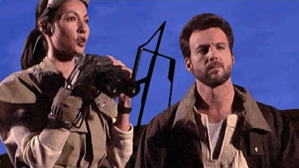 That is until the live action cutscenes begin. That’s right, you heard me correct, Dark Forces II has abandoned the 2d animation of its predecessor and has run with the idea of real actors playing the characters in cutscenes between the levels. I use the term “real actors” fairly loosely as the quality of acting on show hilariously bad. Everything from the costumes and delivery, to the way everyone stands in front of greenscreens so the CGi can be pasted behind them just looks so utterly terrible. In 2020 we’ve reached a point where it’s not uncommon to see major actors playing roles in video games, so it’s quite funny to see how different the lay of the land was 20 years ago. I’m sure the game was likely written, directed and designed by the same small group of people. Not a cinematographer or editor in sight.
