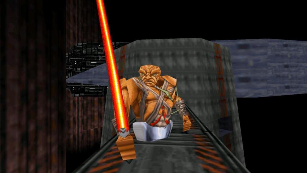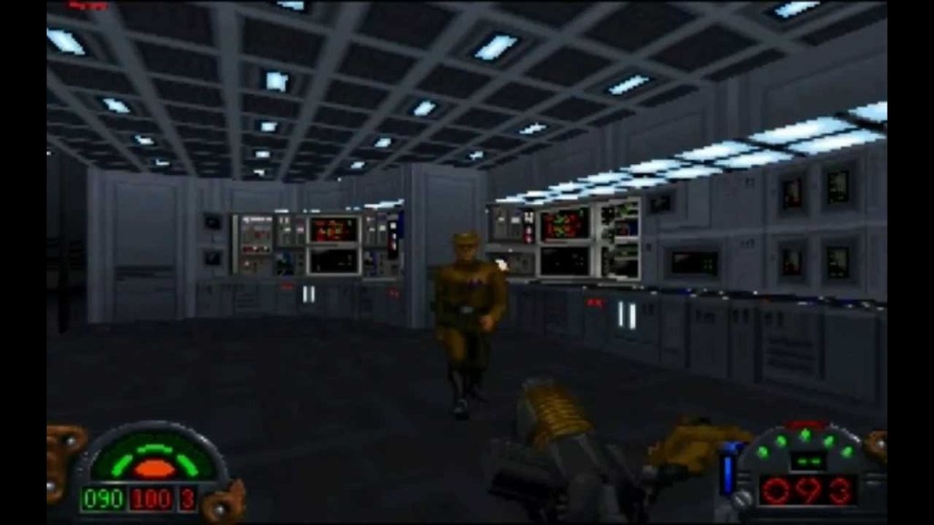What made Dark Forces stand out was that it had such a strong star wars personality. You play as wiley mercenary Kyle Katarn, completing missions for the rebellion and ultimately facing off against Imperial general Rom Mohc, who has fashioned a half robot super soldier – the fearsome Dark Trooper. It’s classic star wars stuff that sees you as the plucky underdog against the evil oppressor and simplistic as it might be, the game actually does a good job of sending you through interesting levels and setting up cool moments. The first time you encounter a dark trooper is legitimately quite scary which is no mean feat for a game that looks like it could run on a microwave. You fight Boba Fett, battle through Jabba’s palace and generally feel like you have an adventure that leads you across the stars.