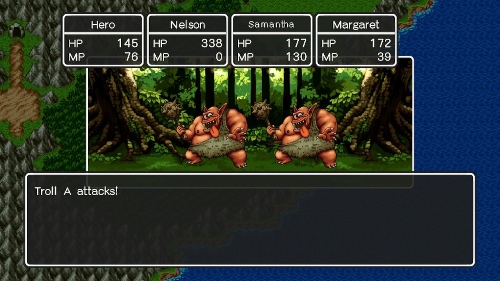 The core formula remains roughly the same as its predecessors – you’re a hero setting out from humble beginnings to defeat an evil power that threatens the world by recruiting friends, fighting enemies and finding items to help in your quest. Some may call it cliche but it’s a tried and tested formula for a reason. It’s engrossing to start small, fighting off a couple of slimes at a time, slowly building to the end game where you dish out hundreds of points of damage and have an arsenal of spells at your disposal. It’s a classic system that not only works but that I personally enjoy very much.