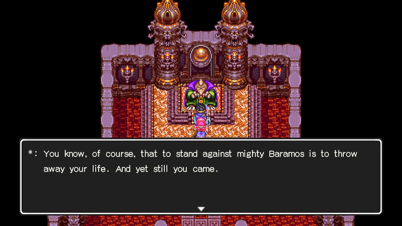 It’s this level of sheer narrative ambition that makes Dragon Quest III so brilliant. It’s important to remember that this was originally an 8bit game developed for the NES meaning the developers were working with absurdly limited resources by modern standards. The ability to not only have a complex fully realised JRPG but also tie it masterfully into the previous games in the series, all with no cutscenes, no lengthy dialogues and no party interactions is absolutely genius and really speaks to why these games are considered classics.
