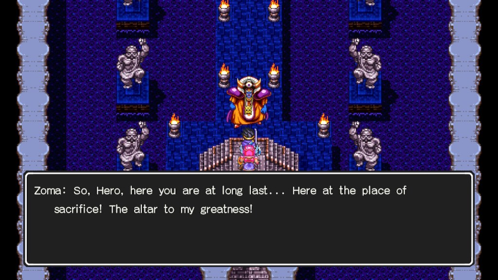 Most people who have played Pokemon Gold/Silver will remember that moment when you beat the Elite Four only to find out that the entire world of Kanto from Blue/Red is also available. It’s a great surprise but really Dragon Quest did it eleven years earlier! That being said, I’d argue that DQIII goes one step further as after you finally beat Zemos you’re hit with yet another revelation.